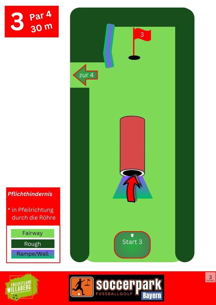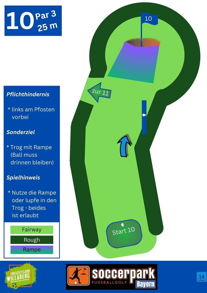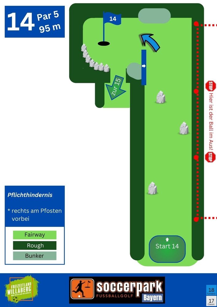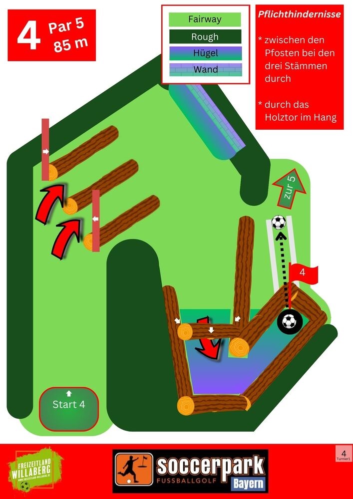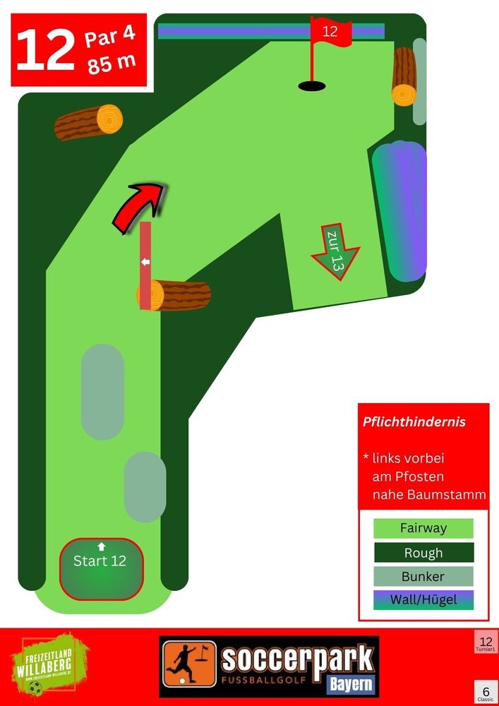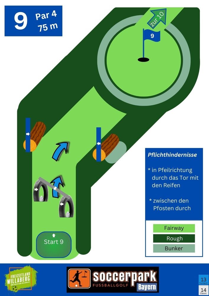 Ab Saison 2025 wurde die Anlage auf 30 Loch erweitert und besteht nun aus einem Kurs mit 15 rot und einem Kurs mit 15 blau beflaggten Löchern. Die Bahnen sind zwischen 20 und 220 Meter lang, die Gesamtstrecke aller 30 Bahnen beträgt ca 2 km. Man sollte (je nach Gruppengröße) für den roten oder blauen Kurs rund 1,5 bis 2 Stunden Zeit einplanen. Fussballgolf ist ein Freizeitspaß für die ganze Familie von jung bis alt. Geübte Fussballer sind dabei aber nicht immer im Vorteil ;-)