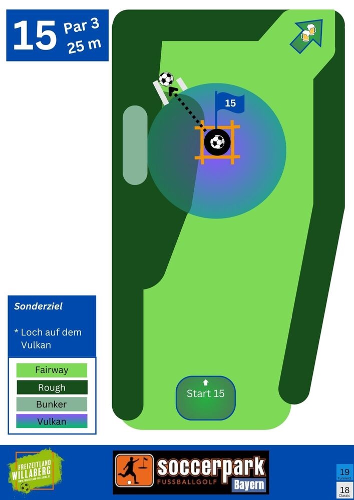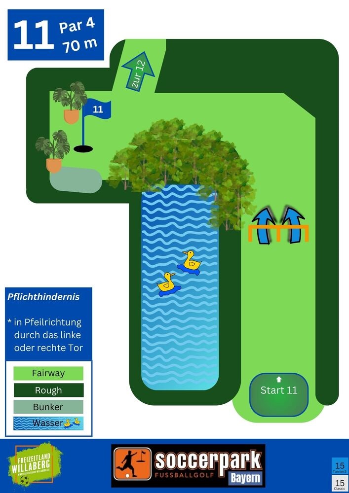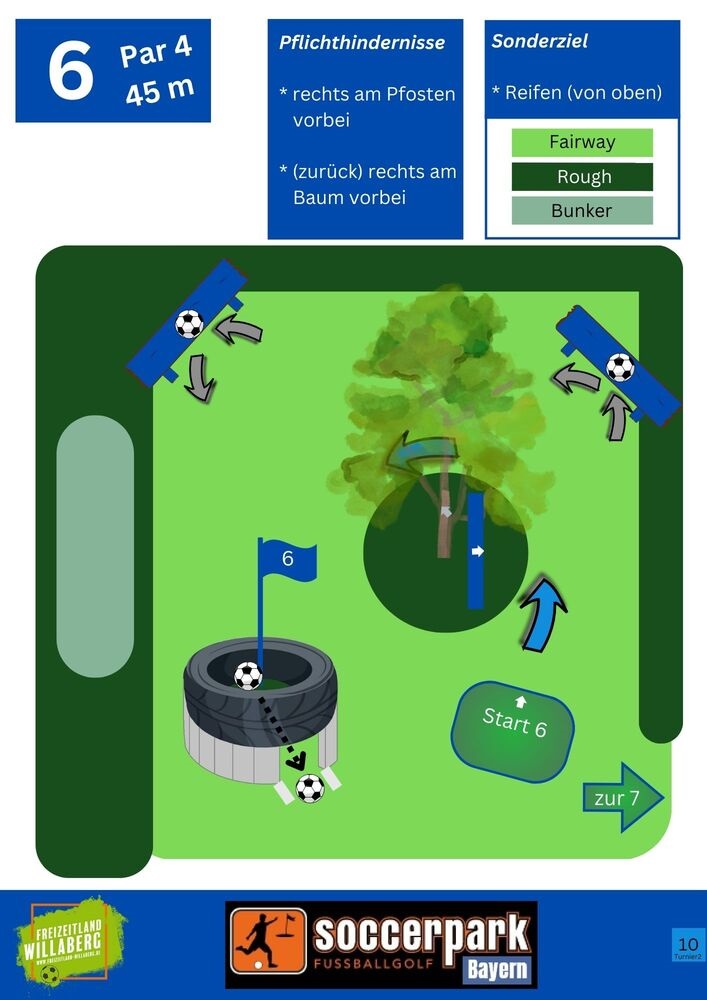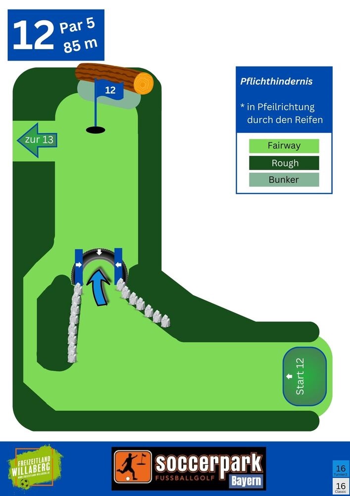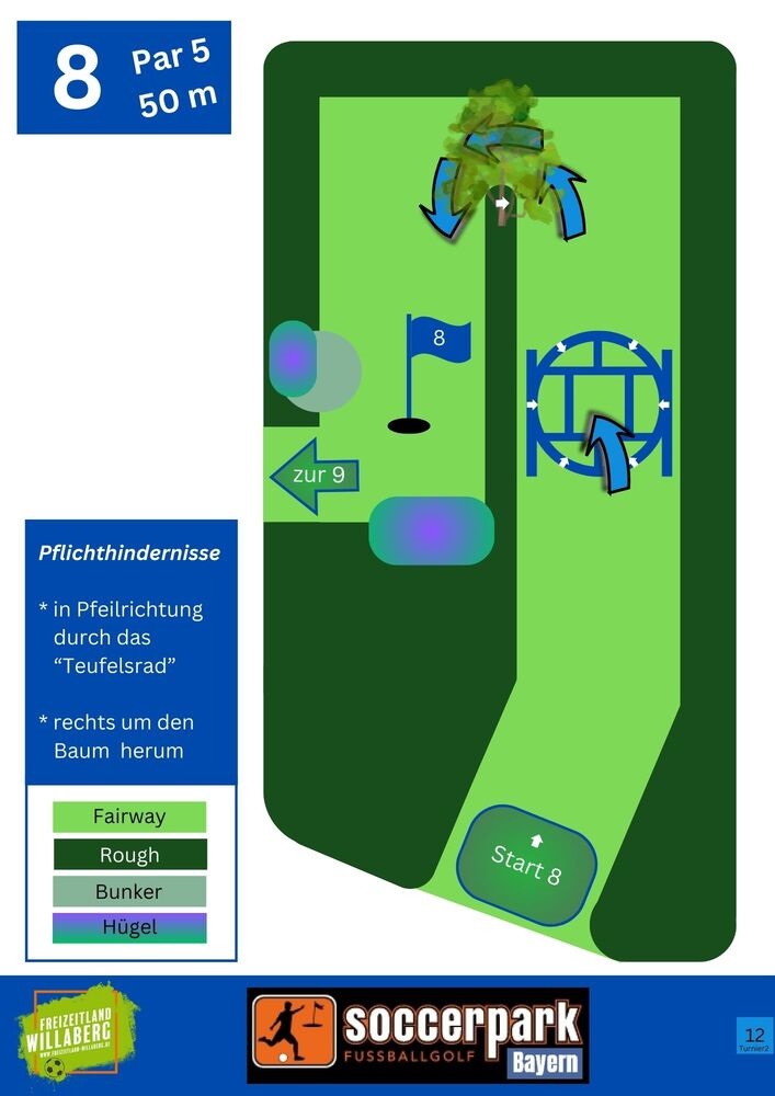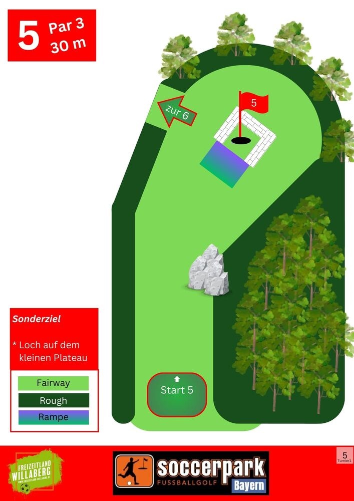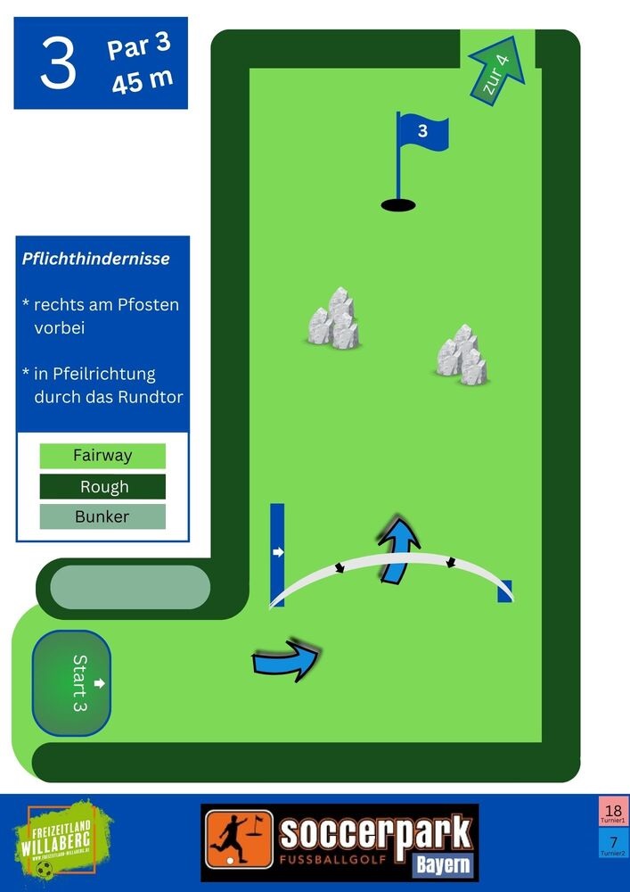 Ab Saison 2025 wurde die Anlage auf 30 Loch erweitert und besteht nun aus einem Kurs mit 15 rot und einem Kurs mit 15 blau beflaggten Löchern. Die Bahnen sind zwischen 20 und 220 Meter lang, die Gesamtstrecke aller 30 Bahnen beträgt ca 2 km. Man sollte (je nach Gruppengröße) für den roten oder blauen Kurs rund 1,5 bis 2 Stunden Zeit einplanen. Fussballgolf ist ein Freizeitspaß für die ganze Familie von jung bis alt. Geübte Fussballer sind dabei aber nicht immer im Vorteil ;-)