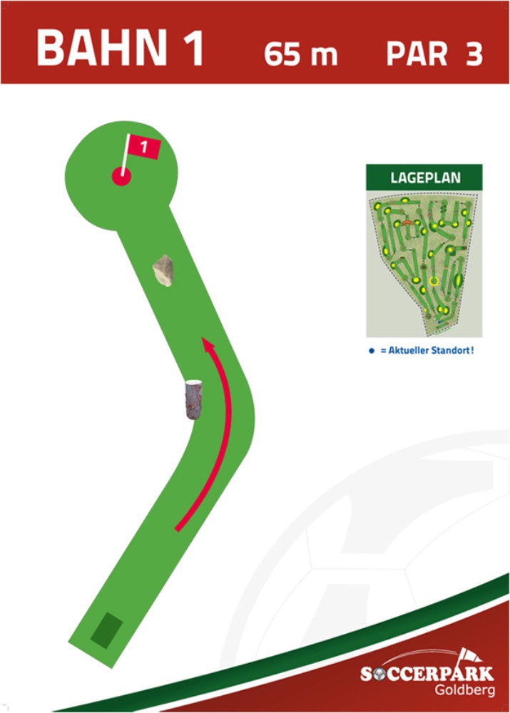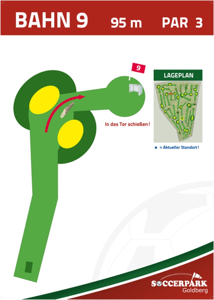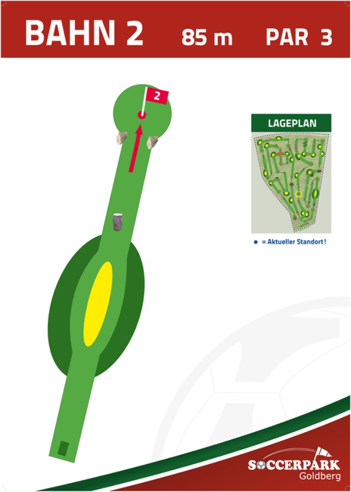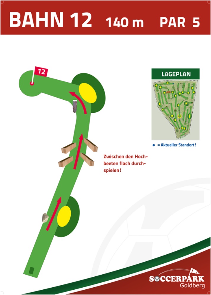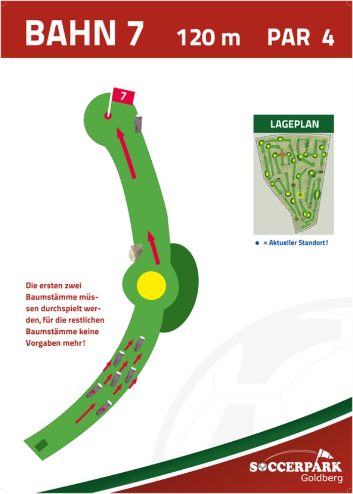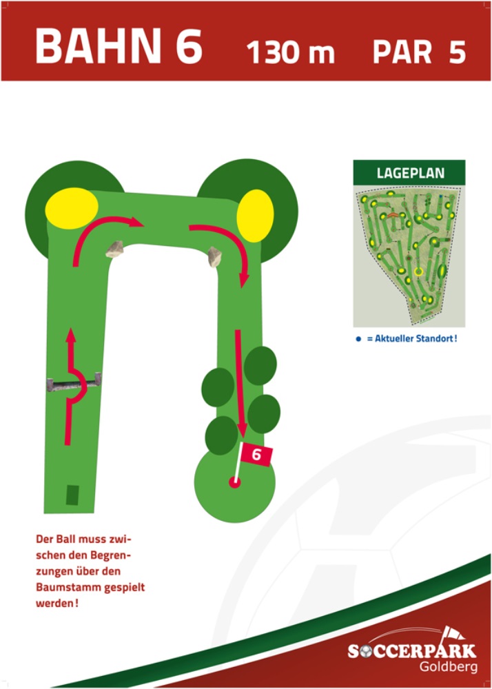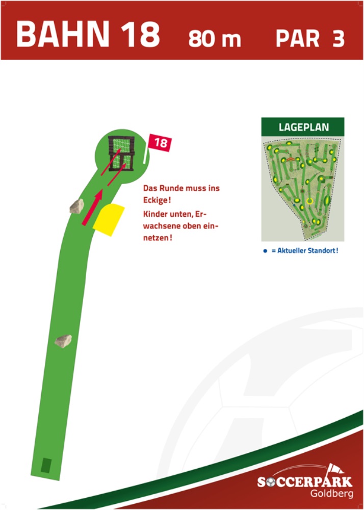 Fußballgolf wird wie Golf auf 18 Bahnen gespielt mit Par 72.