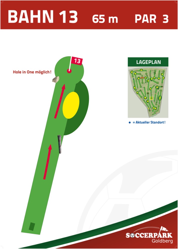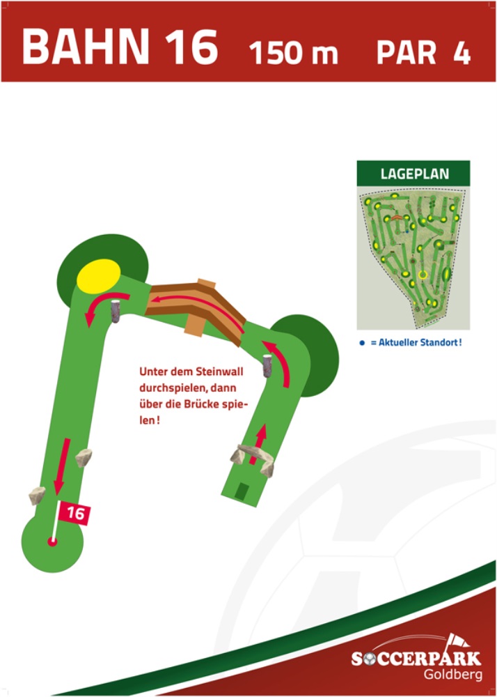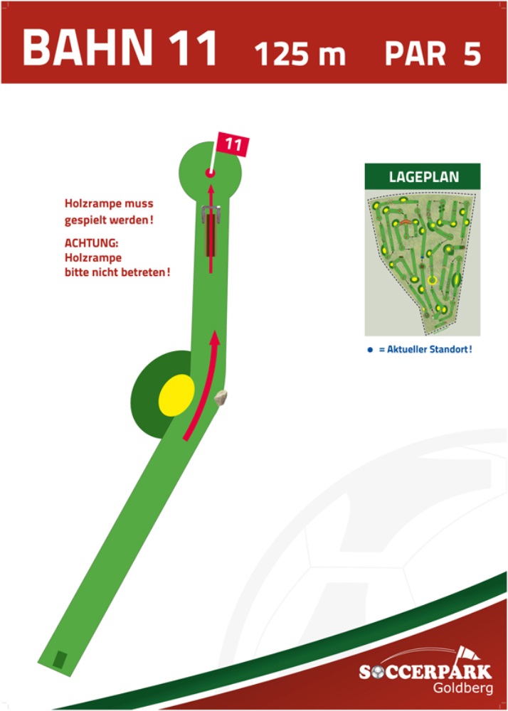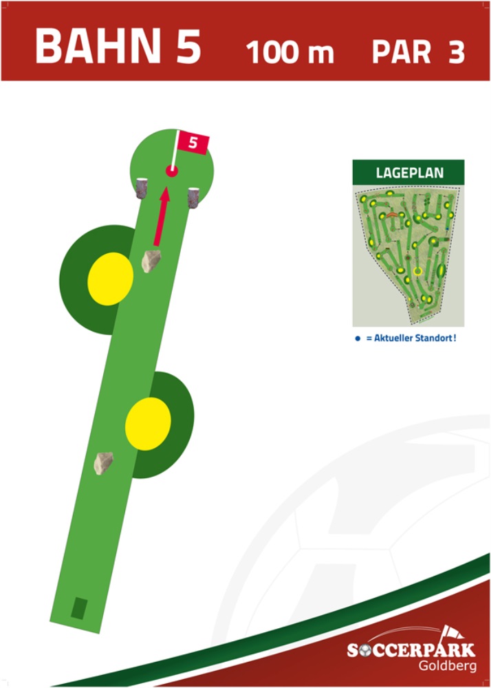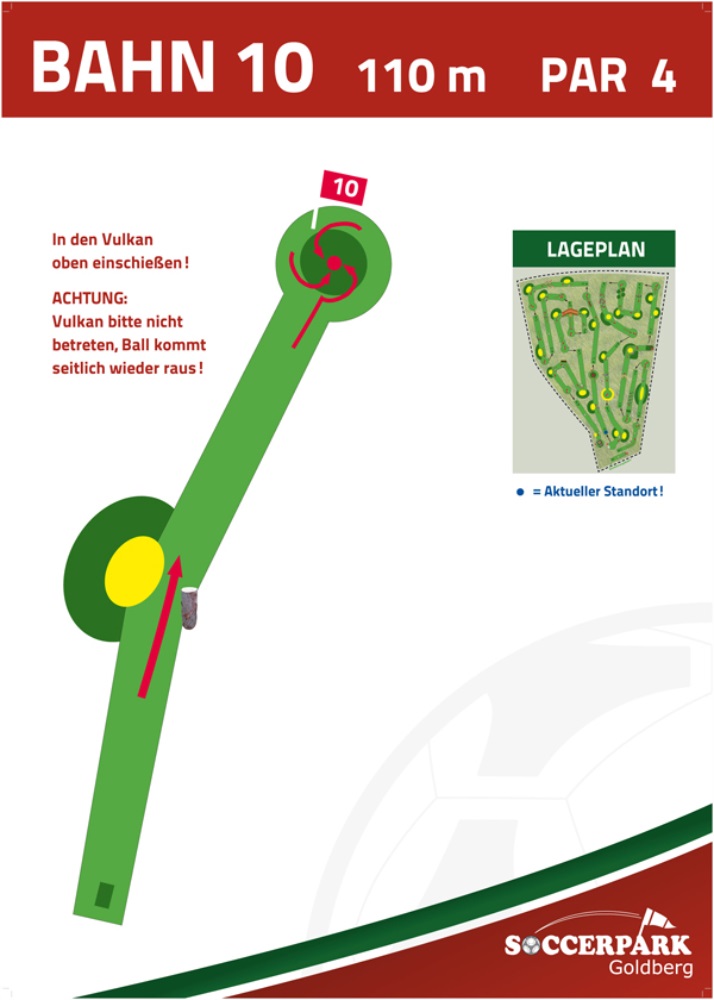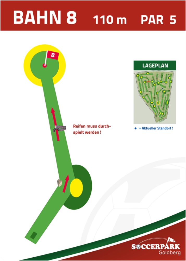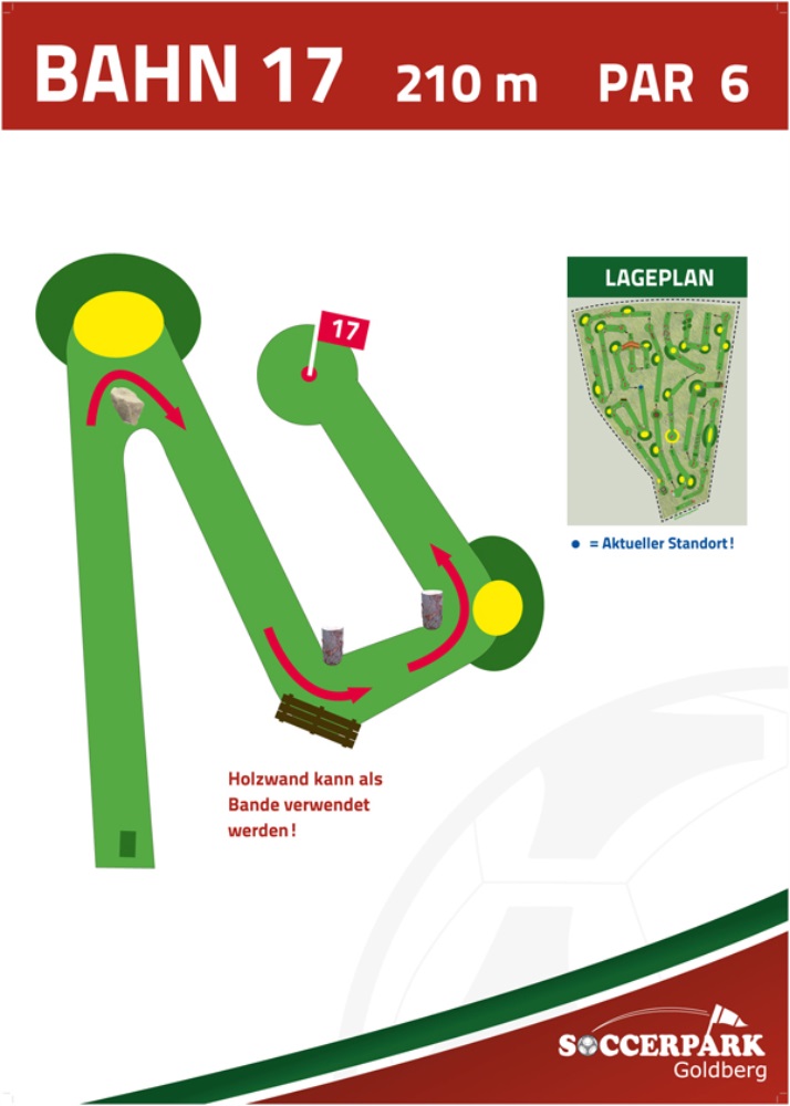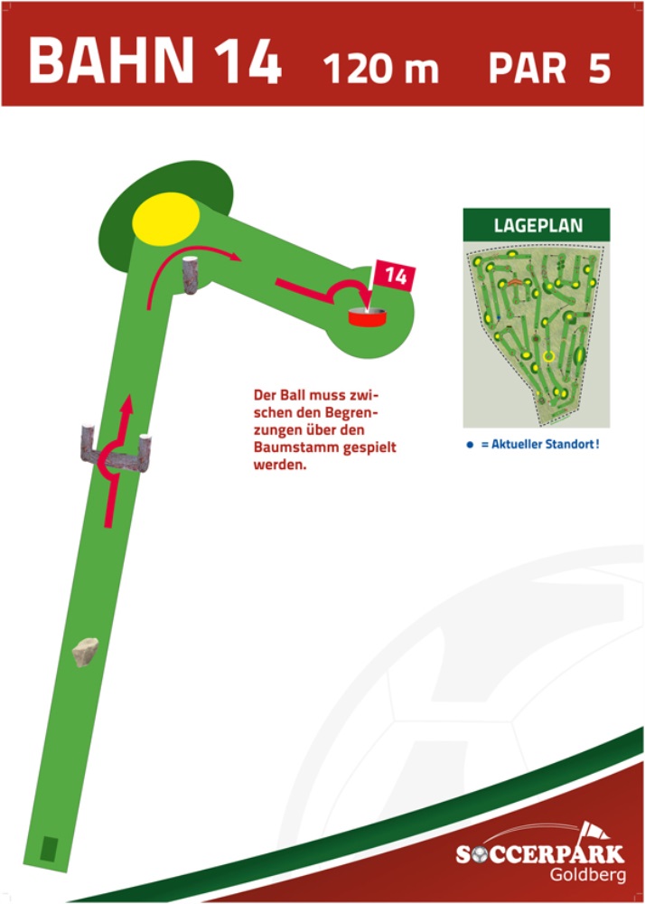 Fußballgolf wird wie Golf auf 18 Bahnen gespielt mit Par 72.