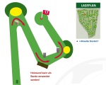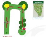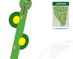 Unsere Freiluft Fußballgolf-Anlage umfasst eine Spielfläche von rund 45.000 qm. Die Bahnen sind zwischen 50 und 210 Meter lang, die Gesamtstrecke aller 18 Bahnen zusammen beträgt ca. 2 km.