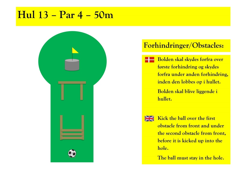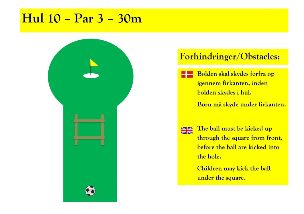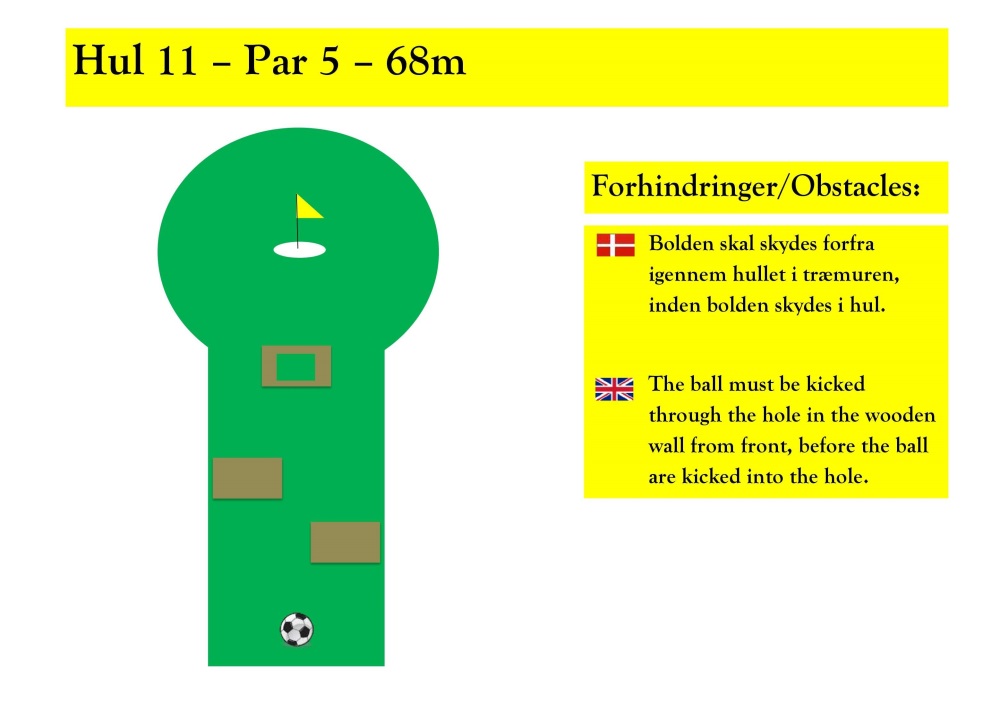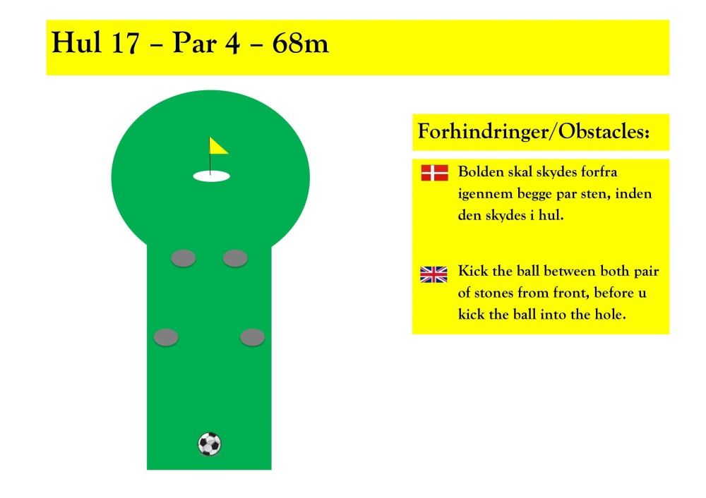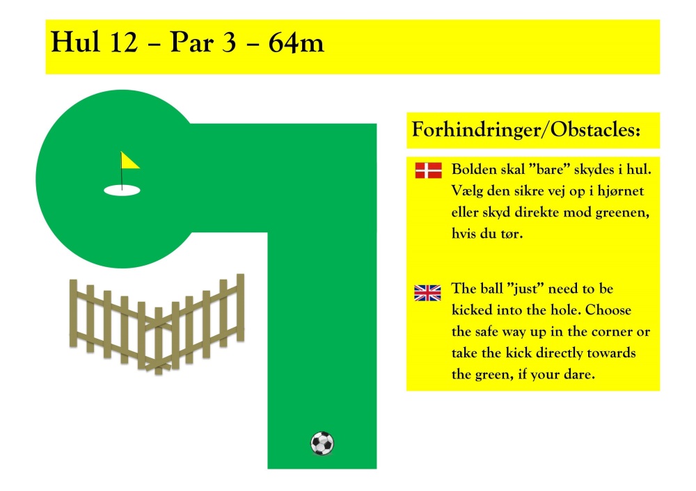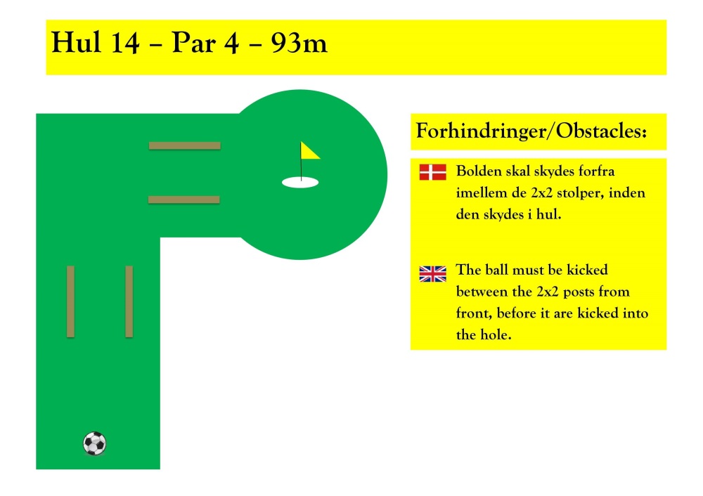 Vi tilbyder jer hele 36 hullers fodboldgolf, fordelt på 2 baner á 18-huller.
