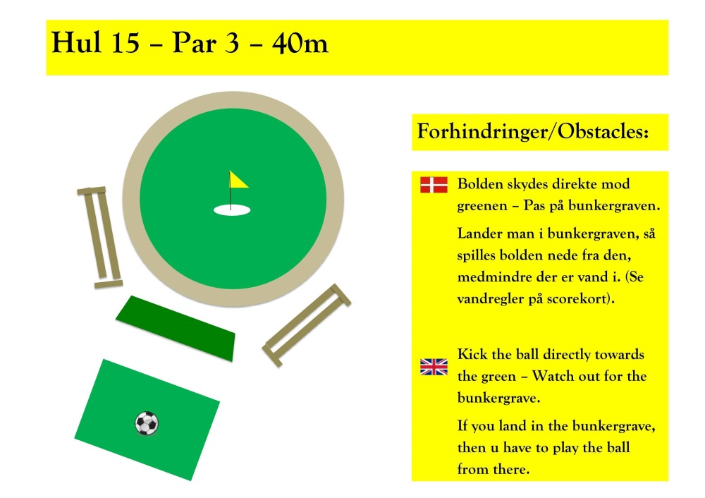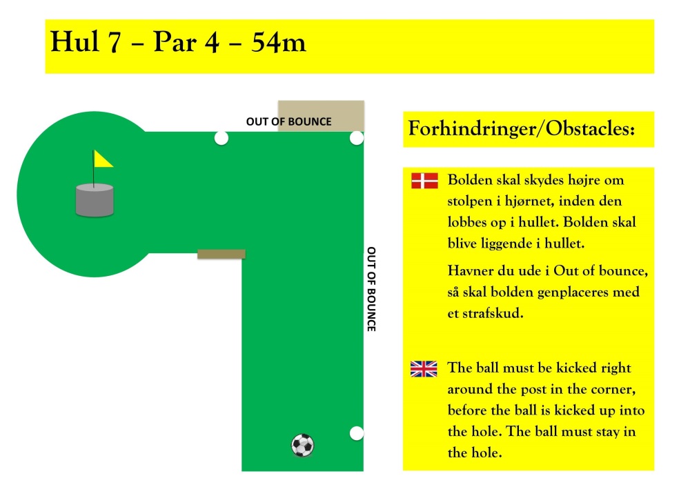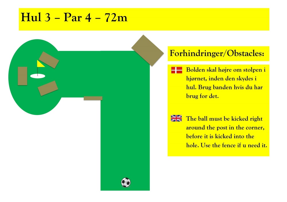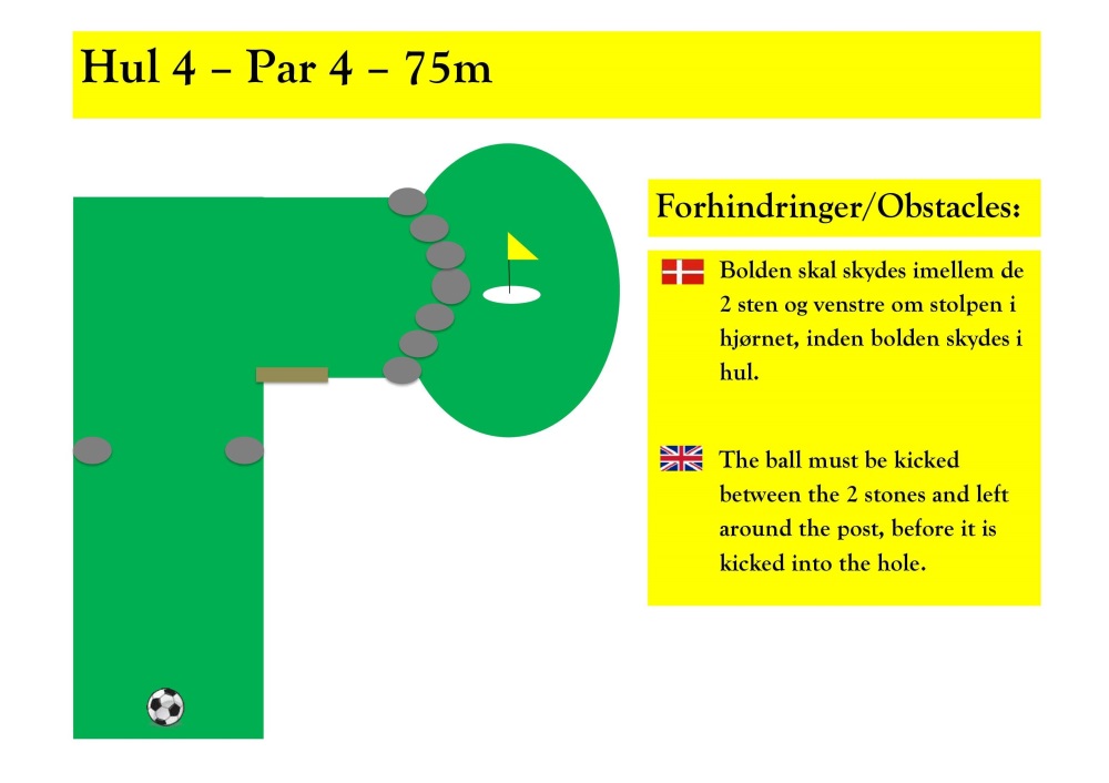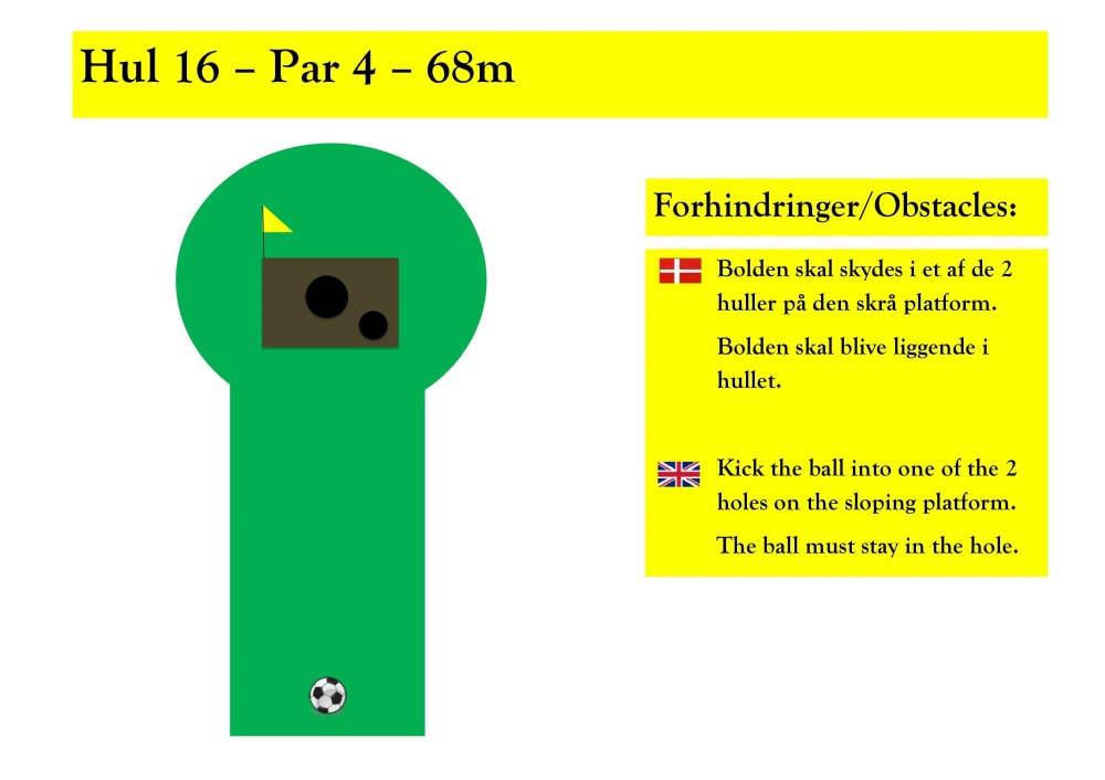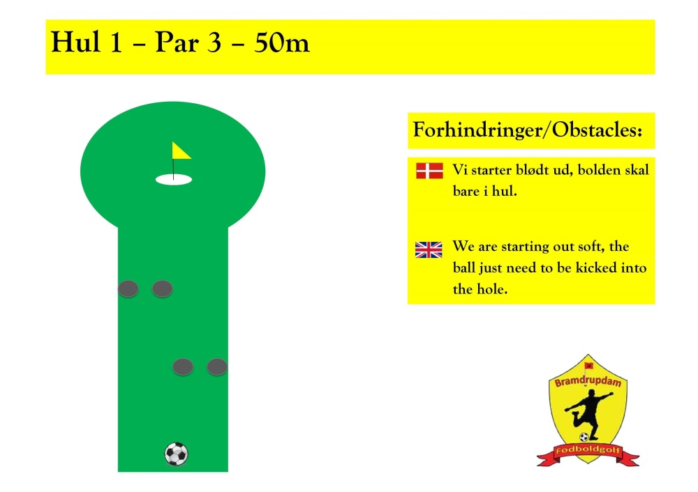 Vi tilbyder jer hele 36 hullers fodboldgolf, fordelt på 2 baner á 18-huller.
