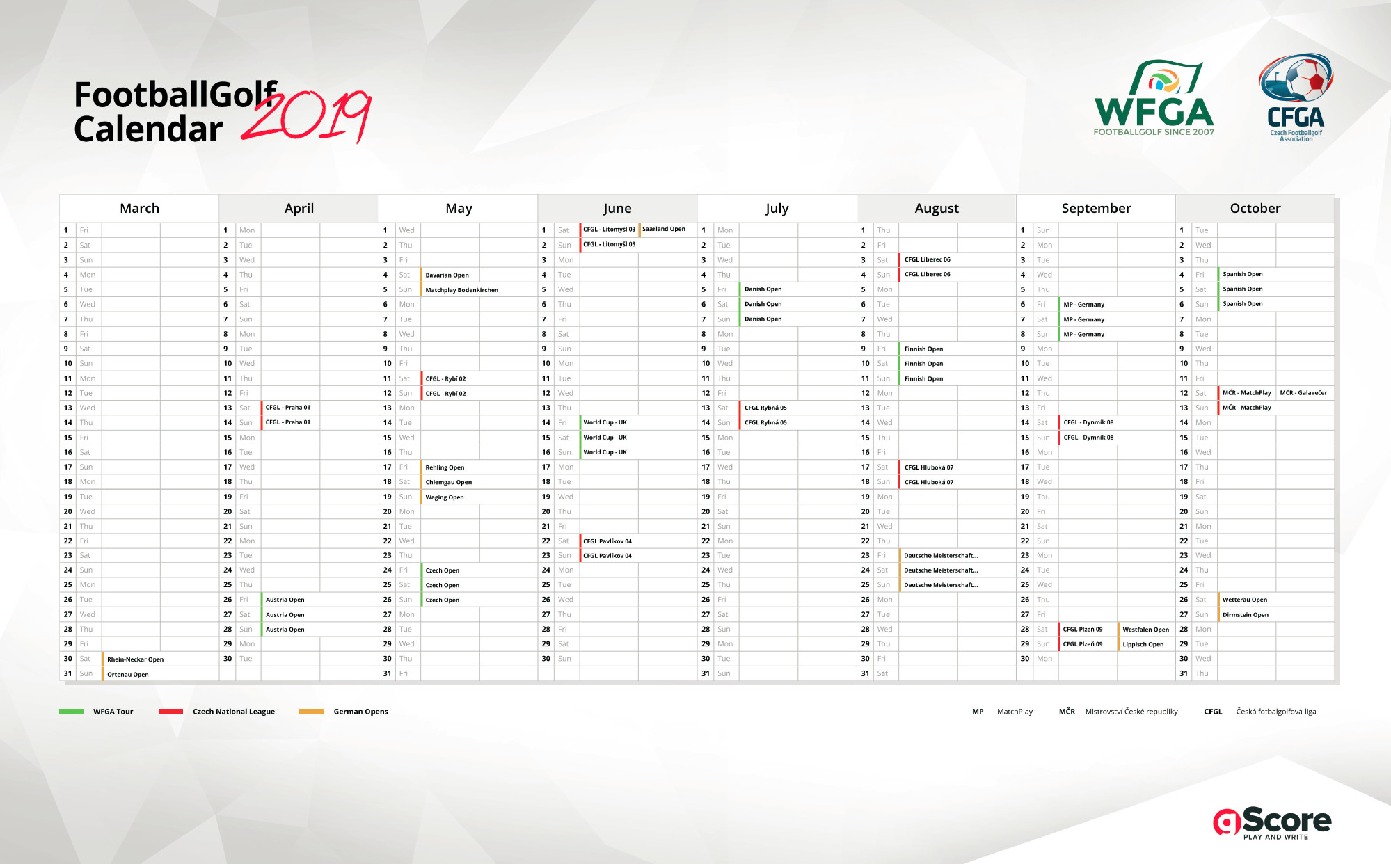Aktuální seznam turnajů ve fotbalgolfu jak pod CFGA, tak i v rámci DFGV a WFGA asociacemi. Pevně věřím, že se na většině z nich potkáme;) Registrace na CFGA turnaje bude otevřena po víkendu, kdy se bude rozhodovat o formátu hry a rozložení jednotlivých dnů. Registrace na turnaje DFGV již běží - více např. na www.dfgv.online. Registrace na turnaje WFGA bude spuštěna v následujících dnech!